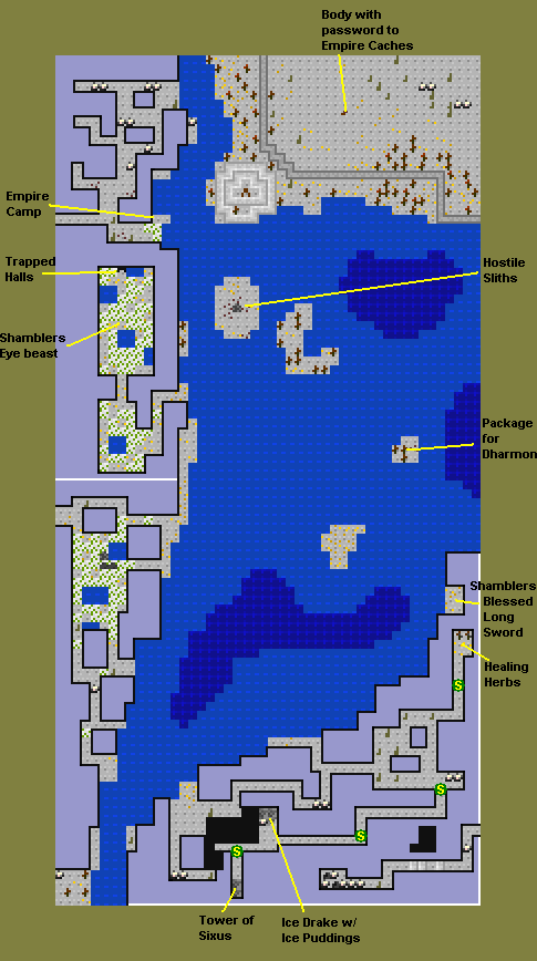 - The first tower you see in the south is a trap containing an Ice Drake and some