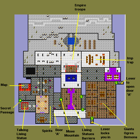 - Go through the secret passage, past the statues (which would have eaten your food if you still had some),