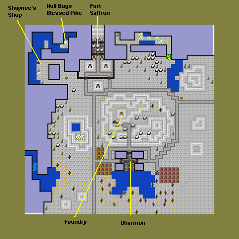 Shops Foundry: Steel armor and weapons, buys stuff Shaynee's Shop: Magical items, buys stuff |