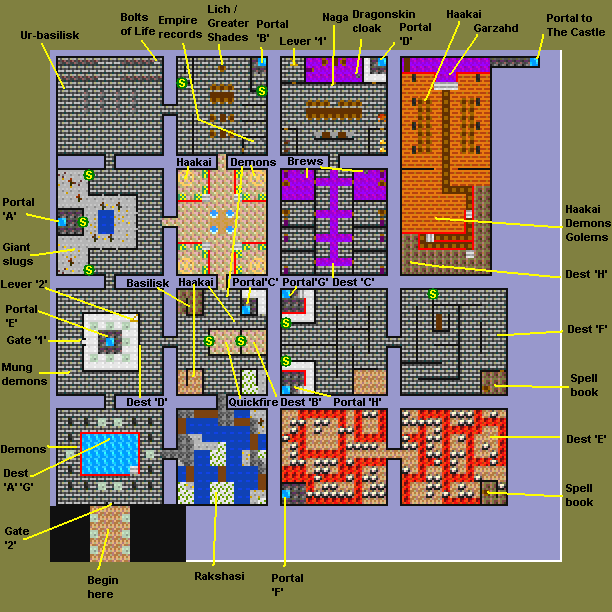 - There are two portals in the next room: the NW one ('G')leads to entrance