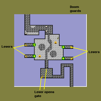 the first lever you trigger a trap that summons !!2!! doom guards.