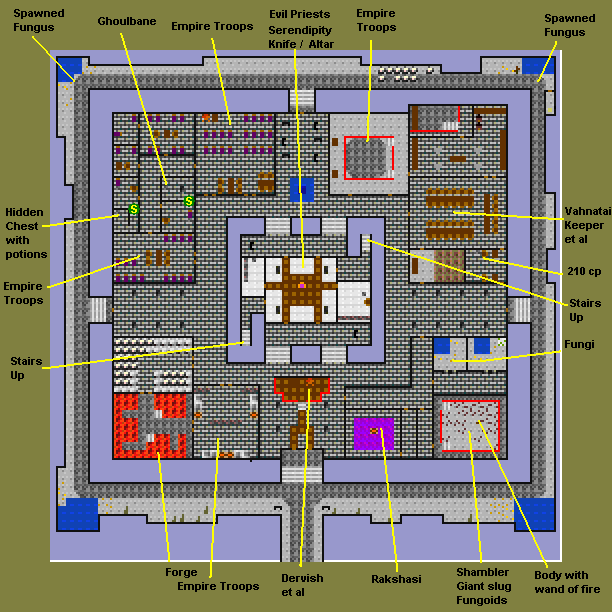 - To the NW is a fungoid room. There's a wand and two potions in that chest.